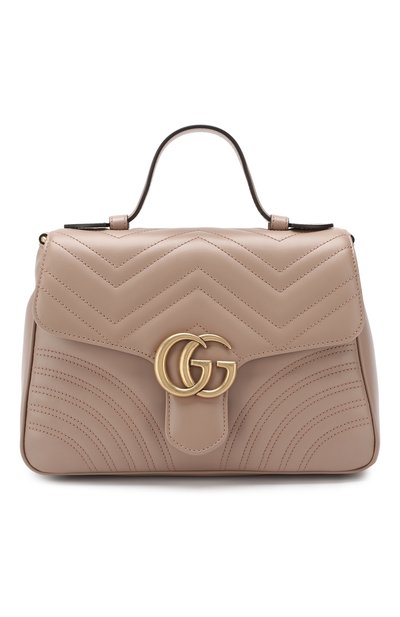 Для создания небольшой сумки GG Marmont мастера марки, основанной Гуччио Гуччи, использовали мягкую кожу бежевого оттенка. Прямоугольный клапан украсили знаковой для аксессуаров бренда GG-монограммой. Под ней спрятали замок-защелку. Комбинированный стеганый узор напоминает мотивы на ткани матлассе. Внутрь поместятся смартфон, кошелек и любимый аромат. Изделие вошло в классическую коллекцию.