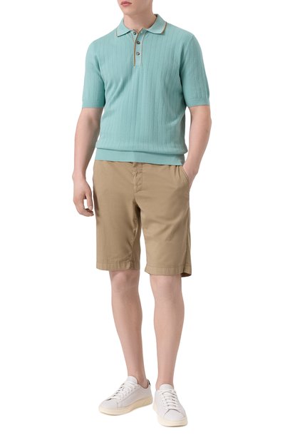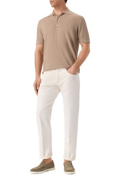 Чтобы сделать меланжево-зеленое поло максимально комфортным даже в зной, для его создания использовали джерси из чистого льна. Его ультрадлинные волокна обладают антибактериальными и терморегулирующими свойствами, поэтому модель поддерживает оптимальный микроклимат и не впитывает посторонние запахи, сохраняя ощущение свежести в течение дня.