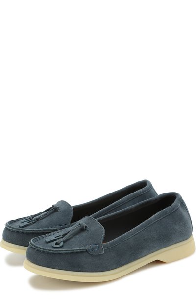 Лоферы цвета морской волны изготовлены из мягкой фактурной замши. Гибкая резиновая подошва хорошо амортизирует, уменьшая нагрузку на суставы. Подвески в форме кольца и навесного замка можно снять.