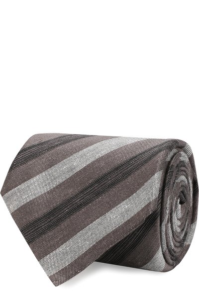 Для изготовления широкого галстука мастера марки использовали мягк ий лен с добавлением прочного шелка. Естественное переплетение волокон складывается в полосатый мотив. Хранить изделие лучше в свернутом виде в ячейке органайзера.