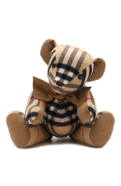 Дизайнер марки декорирует фирменным клетчатым узором даже игрушки. Бежевую модель в виде медведя Thomas, который получил свое название в честь Томаса Берберри, украсили орнаментом Vintage Check. Для создания изделия с объемным галстуком-бабочкой мастера бренда использовали плотную фактурную ткань из тонких волокон кашемира. Такой материал мягкий и нежный на ощупь.