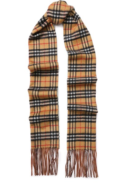 Бежевый клетчатый шарф произведен из плотного кашемира, обработанного специальными шишками для достижения особой мягкости. Модель украшена бахромой по краям. Благодаря длине аксессуар можно обернуть вокруг шеи несколько раз или завязать на французский узел.
