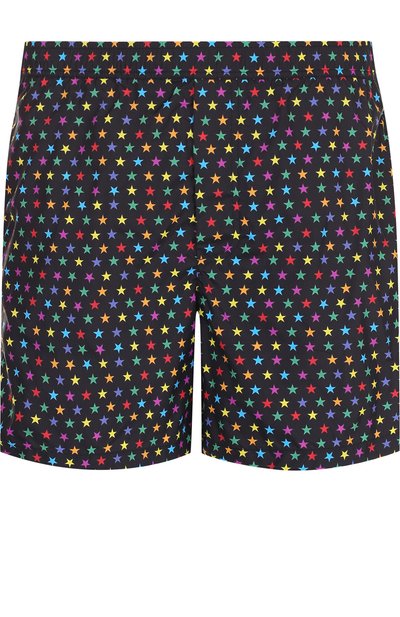 Мастера марки сшили черные плавки из легкого прочного нейлона с принтом в виде разноцветных звезд. Этот тонкий быстросохнущий материал устойчив к воздействию хлорированной и соленой воды. Модель дополнена широким эластичным поясом, который обеспечивает комфортную посадку по фигуре.