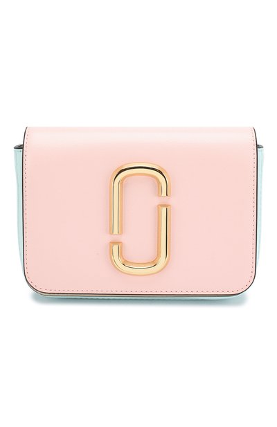 Небольшая светло-розовая сумка The Hip Shot из весенне-летней коллекции – аксессуар 4-в-1: благодаря двум съемным регулируемым ремням ее можно носить на талии, на плече, как кроссбоди или клатч. Модель выполнили в технике color block из устойчивой к царапинам плотной сафьяновой кожи с прокрашенными вручную краями. Марк Джейкобс украсил переднюю панель крупной золотистой эм блемой Double J.