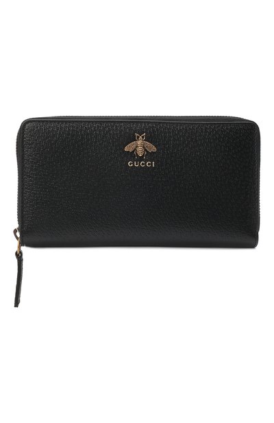 Черное портмоне из матовой зерненой кожи украшено характерной для линии Animalier накладкой в виде пчелы из металла с покрытием цвета античного золота. Этот декор, впервые появившийся в 1970-е – часть ДНК марки, основанной Гуччио Гуччи. Аксессуар с 12 слотами для кредитных карт, тремя отделениями для банкнот и карманом для монет застегивается на круговую молнию.