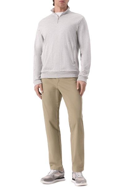 Для изготовления джемпера с короткой молнией и высоким воротом использовали кашемировый трикотаж. Модель из такого материала одинаково комфортно носить как поверх футболки, так и на голое тело.