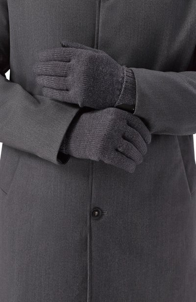Натуральные оттенки кашемира – черный или темно-серый, как у этих мела нжевых перчаток. Вещи такого цвета будут гораздо мягче, чем окрашенные. Модель выполнили гладкой вязкой из пряжи с двойным кручением нитей, поэтому она комфортно садится и хорошо держит форму. Широкие эластичные манжеты украсили бежевым кантом.