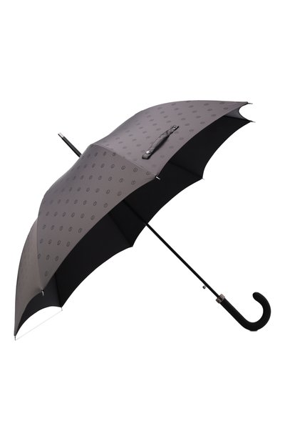 Классический зонт-трость за счет универсального темно-синего цвета и ненавязчивого декора (только повторяющаяся эмблема бренда, которая едва заметная на ткани) подойдет к любому повседневному образу. Модель-трость изготовлена из легкого нейлона. Материал отличается прочностью, поэтому не порвется при сильных порывах ветра. Ручка отделана гладкой черной кожей.