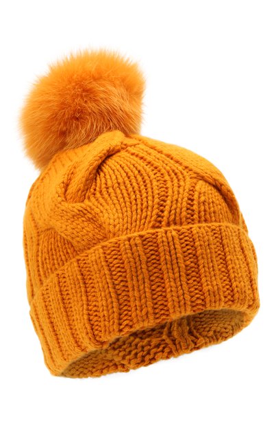 Для изготовления оранжевой шапки использовали легкий baby-кашемир. Пух для пряжи получают только у избранных козлят породы Hircus, обитающих в суровом климате Монголии. Резкие перепады температур тех мест способствуют образованию густого теплого подшерстка, который вручную счесывают с животного в возрасте от трех месяцев до года. Изделия из такого материала отличаются неповторимым сочетанием тепла и нежности.