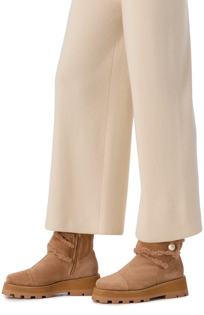 Своим внешним видом бежевые ботинки Susanna напоминают обувь ковбоев. Ассоциацию вызывает и скошенный невысокий каблук, и три ремешка с пряжками и наконечниками. Для пошива утепленной овчиной модели использовали прочную бархатистую замшу. Изделие из коллекции сезона осень-зима украсили миниатюрными заклепками. Из них на миндалевидном мысе и боковой панели сложили цветы.