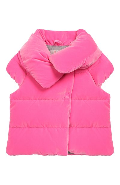 Стеганый розовый жилет станет оптимальной альтернативой куртке в прохладную сухую погоду. Модель выполнена из мягкого бархата на основе прочного полиэстера. Материал хорошо держит форму и не выцветает со временем. Легкий наполнитель из гусиного пуха поддерживает комфортную температуру, не утяжеляя изделие. Дополнительную защиту от ветра обеспечивает объемный воротник.