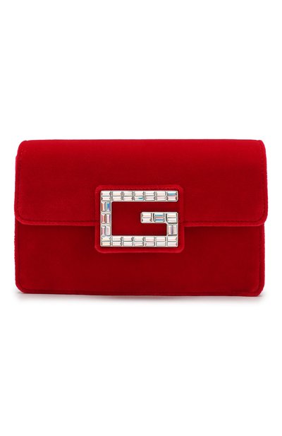 Мастера марки, основанной Гуччио Гуччи, изготовили ярко-красную сумку Broadway из мягкого плотного барх ата. Модель из осенне-зимней коллекции украшена аппликацией в виде буквы G из сверкающих кристаллов. Внутрь поместятся смартфон, кардхолдер и помада. Плечевой ремень в виде витого черно-золотого шнура можно снять и носить аксессуар как клатч.