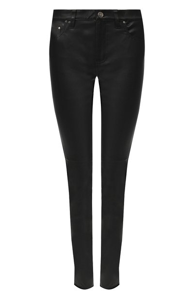 Облегающие брюки, словно позаимствованные из гардероба Тринити, можно носить с разноцветным пуловером и ботинками на массивной подошве или облачиться полностью в черное, как героиня sci-fi фильма. Изделие с классической посадкой выполнено из гладкой эластичной кожи с глянцевым блеском.