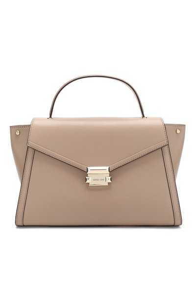 Майкл Корс включил бежевую сумку Whitney в классическую коллекцию. Аксессуар с регулируемыми по ширине боковыми панелями закрывается широким клапаном на замок-защелку. В основное отделение поместятся смартфон, кошелек и любимый аромат. Благодаря жесткому дну найти внутри ключи или помаду будет несложно. В комплекте – съемный плечевой ремень.