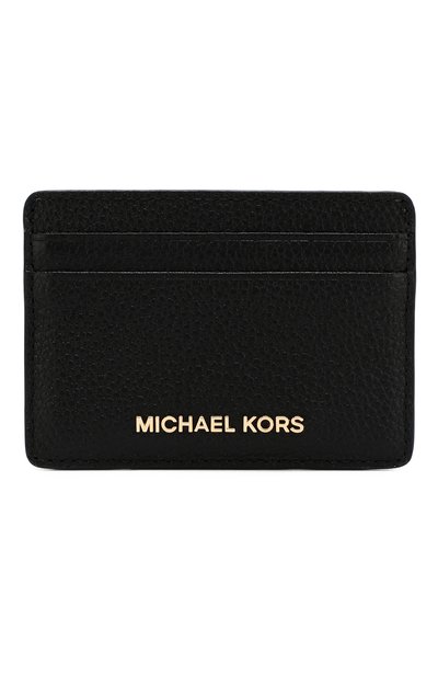 Черный футляр изготовили из крупнозернистой кожи. На этом материале будут меньше видны возможные со временем повреждения, поэтому аксессуар прослужит долго. Модель украсили позолоченным логотипом бренда. Помимо четырех слотов в кардхолдере предусмотрели открытый отсек между панелями.