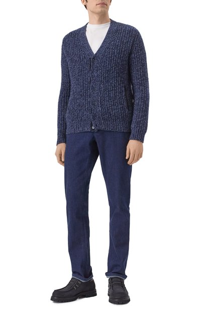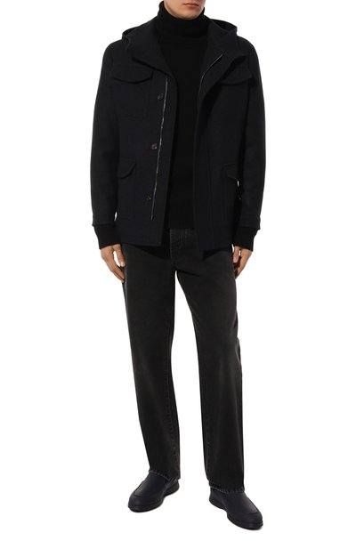 Темно-синие ботинки на невысоком устойчивом каблуке стилизовали под дерби. Классическую модель из гладкой глянцевой кожи разнообразили, выполнив основу шнуровки и отделку выреза из кожи каймана. Обувь из осенне-зимней коллекции застегивается потайной молнией на внутренней боковой панели. Такое изделие хорошо справится с многозадачностью: оно будет уместно и в повседневном, и в офисном образе.