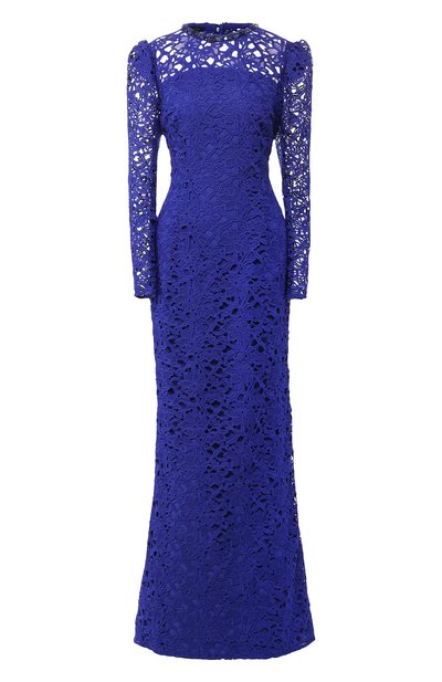 Найл Слоан – мастер по созданию вечерних платьев. Эта модель ярко-синего цвета – прямое тому подтверждение. Изделие с длинными рукавами выполнено из тонкого полупрозрачного кружева с цветочным мотивом, подкладка – из мягкого эластичного материала. Вещь вошла в весенне-летнюю коллекцию.