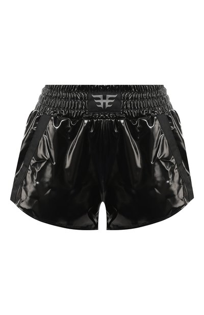 Мастера марки выполнили короткие черные шорты из плотного, но при этом легкого полиэстера с глянцевым блеском. Свободный крой не сковывает движения, а широкий эластичный пояс с эмблемой бренда спереди не только плотно облегает талию, но и обеспечивает дополнительную поддержку. Модель из весенне-летней коллекции украшена фактурными лентами гросгрейн по бокам.