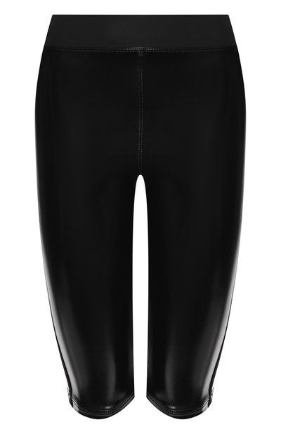 Черные велосипедки имитируют кожаную вещь, но при этом сохранили весь функционал спортивной. Модель из мягкого эластичного материала на основе полиамида облегает тел о как вторая кожа, поэтому почти не ощущается на теле. Ткань хорошо пропускает воздух и отводит влагу: в таких шортах не дискомфортно во время активных тренировок. Посадка регулируется широким поясом-резинкой с серой эмблемой марки сзади.