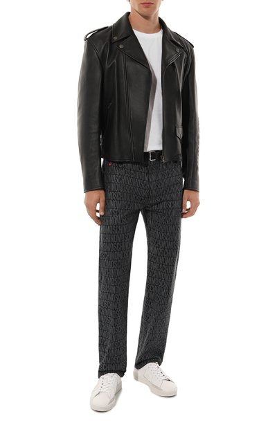 Черная косуха выглядит максимально аскетично: прямой крой и фурнитура серебристого цвета. Такую лаконичность Энтони Ваккарелло компенсировал глянцевым блеском мягкой фактурной кожи. Куртка добавит брутальности образу с джинсами, футболкой и челси.