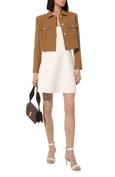В классическую коллекцию Джанвито Росси включил белые босоножки Portofino. Для создания изделия мастера бренда использовали гладкую мягкую кожу (этим же материалом обтянут высокий тонкий каблук). Широкие ремешки на щиколотке и союзке подчеркивают подъем.