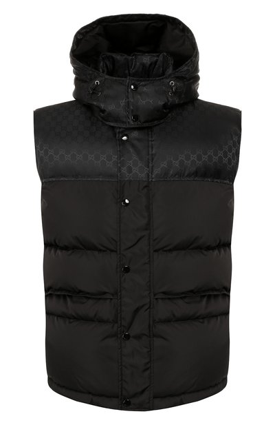 В осенне-зимнюю коллекцию Алессандро Микеле включил черный стеганый жилет. Модель сшили из прочного непромокаемого нейлона двух видов: матового и шелковистого с жаккардовым мотивом GG Supreme (в узоре зашифрованы инициалы Гуччио Гуччи). Изделие с регулируемым съемным капюшоном утеплили отборным гусиным пером: такой наполнитель поддерживает оптимальную температуру и почти не утяжеляет вещь.
