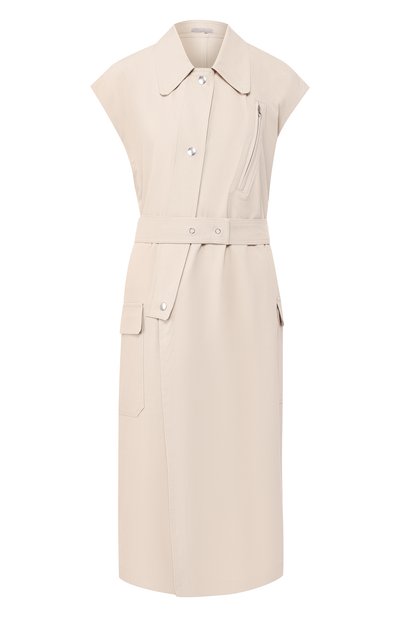 Бежевое пальто, стилизованное под удлиненный жилет, идеально впишется в повседневный образ. Модель с асимметричной планкой и отложным воротником сшили из прочного эластичного материала: мягкий хлопок в его составе хорошо пропускает воздух, а шелковистая вискоза делает ткань особенно приятной на ощупь. Изделие с двумя накладными карманами вошло в весенне-летнюю коллекцию.