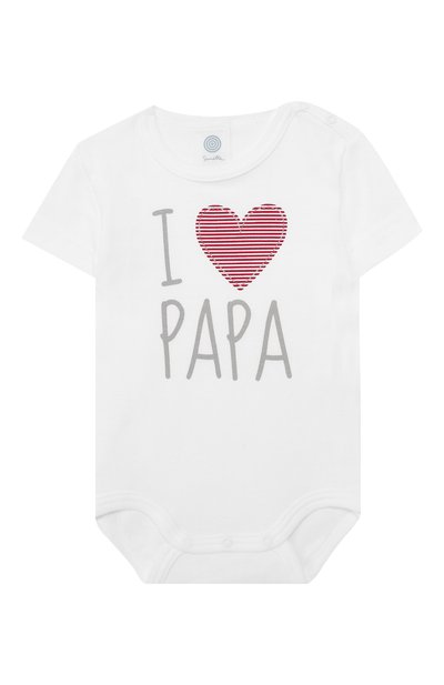 Белое боди украсили крупным принтом в виде сердца и надписи «I love papa». У изделия есть и другие достоинства, например, отсутствие боковых швов и плоские кнопки (для большего удобства их расположили около левого рукава и между проймами). Мастера марки сшили модель из органического хлопка (соответствует международному сертификату Oeko-Tex Standard 100). Такой не вызывает аллергию и раздражения.