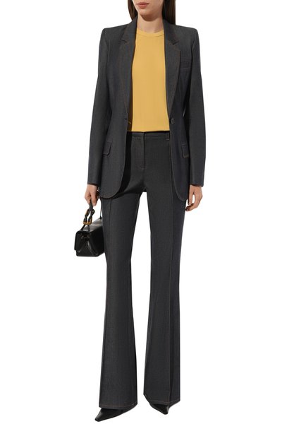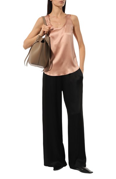Топ оттенка шампанского подружится с вещами как пастельных, так и ярких цветов. Для пошива модели с глубоким U-образным декольте мастера марки, основанной Брунелло Кучинелли, использовали тонкий шелковый атлас, который почти не ощущается на теле. Чтобы изделие удобнее садилось по фигуре, в состав добавили эластан.