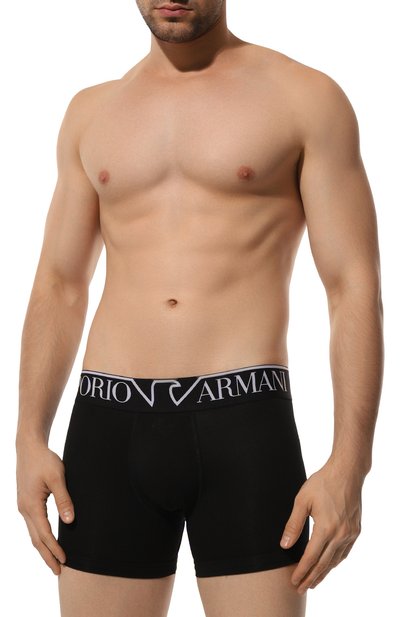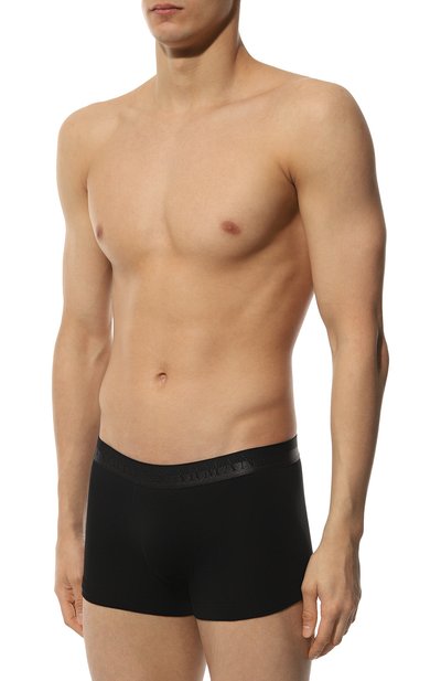 Черные боксеры выполнили из эластичного хлопкового джерси. Материал хорошо держит форму и не пилингуется, поэтому такое белье прослужит долго. Благодаря особому крою и плоским швам трусы плотно облегают фигуру и не натирают кожу. Широкий пояс обеспечивает комфортную посадку. В комплекте – три изделия, декорированные эмблемой марки.