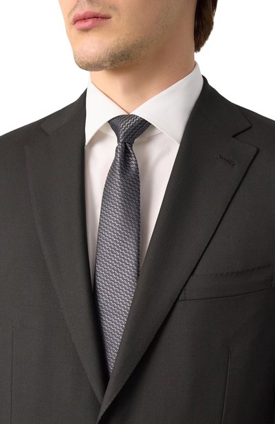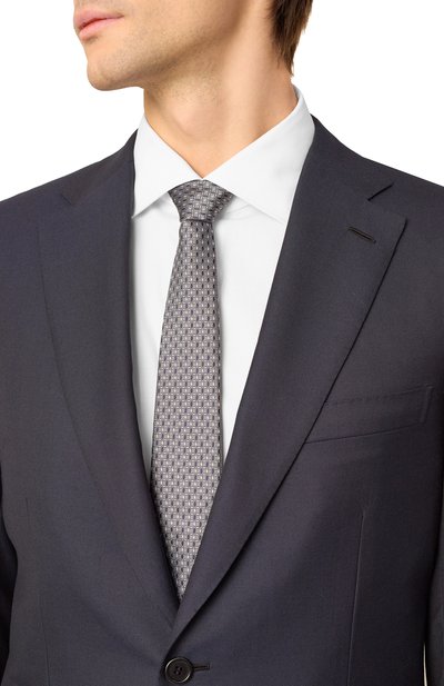 Для создания светло-серого галстука мастера марки использовали фактурный материал на основе тонкого шелка и прочного льна. Аксессуар с диагональным полосатым мотивом будет гармонично смотреться с однотонной рубашкой и костюмом.