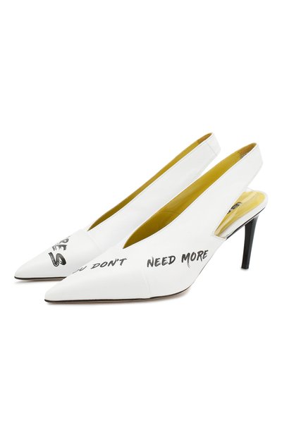 Словно нарисованный фломастером графический принт «Trust your vibes, you don't need more» на белых туфлях из весенне-летней коллекции – готовый слоган для Instagram. Для создания модели с открытой пяткой мастера марки, основанной семьей Балдан, использовали мягкую матовую наппу. Фигурный вырез поможет подчеркнуть высокий подъем.