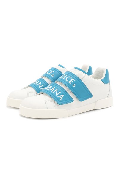 Белоснежные кеды не выглядят просто: вместо привычной шнуровки здесь – два широких ремешка велькро ярко-голубого цвета (вставкой такого же оттенка подчеркнут задник). Для создания модели мастера бренда использовали ультрамягкую кожу наппа.