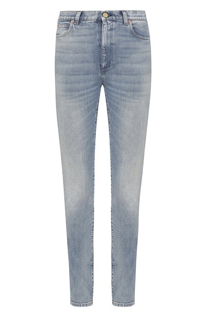 Синие джинсы с потертостями виртуозно справляются с многозадачностью, удачно соседствуя хоть с пиджаком пастельного цвета, хоть с декорированным жакетом, хоть с кожаной курткой. Модель из весенне-летней коллекции выполнена из эластичного плотного хлопка. Изделие украшено сзади вышивкой в виде клубники и иронически переделанного логотипа бренда, основанного Гуччио Гуччи.