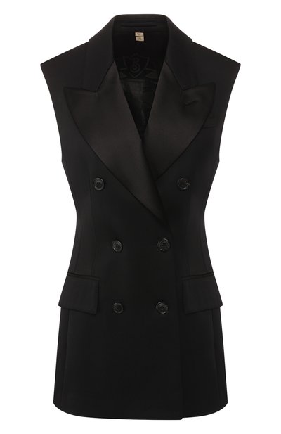 Пересмотрите свой офисный гардероб, заменив привычный блейзер на двубортный жилет с широкими заостренными лацканами, как у смокинга. Для создания модели мастера бренда, основанного Томасом Берберри, использовали тонкую шерсть с добавлением эластичных волокон. Материал хорошо держит форму и его легко гладить. Изделие вошло в весенне-летнюю коллекцию.