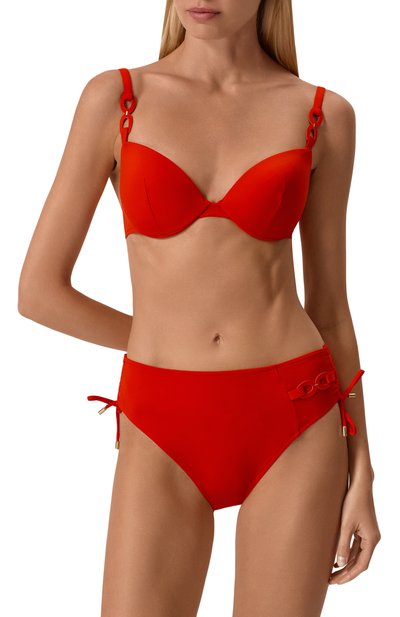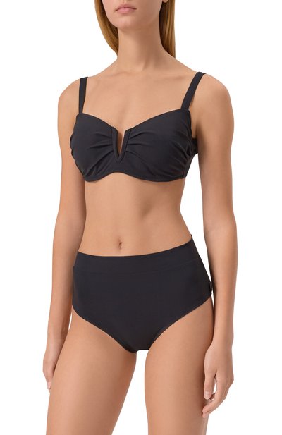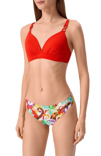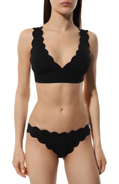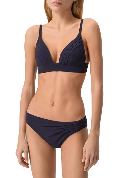 Для создания бра-топа Santa Clara использовали эластичный быстросохнущий полиамид с плетеной текстурой. Модель с V-образным вырезом и фестончатыми краями застегивается плоской клипсой сзади.