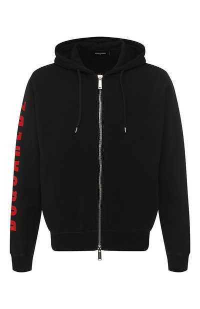 Для производства черной толстовки на молнии мастера бренда использовали мягкий хлопковый футер. Такой дышащий материал приятен на ощупь и легко тянется, не сковывая движений, поэтому в вещи будет комфортно весь день. На правом рукаве — крупный красный принт в виде логотипа марки. Дин и Дэн Кейтены включили изделие с регулируемым капюшоном в весенне-летнюю коллекцию.