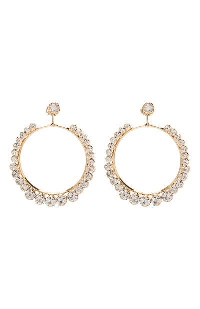 Мастера марки выполнили золотистые серьги из легкого ювелирного сплава, который не вызывает аллергию и раздражения на коже. Аксессуар с круглыми съемными подвесками инкрустирован сверкающими кристаллами Swarovski разной огранки (особенно эффектно они выглядят в лучах я ркого света).