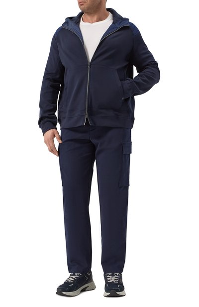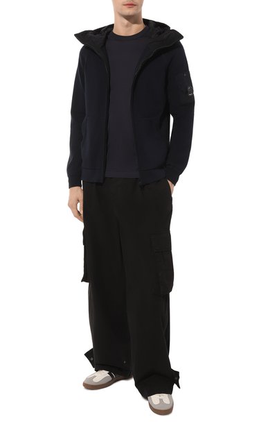 Толстовку свободного силуэта выполнили из мягкого органического хлопка. Модель с регулируемым капюшоном и двумя боковыми карманами застегивается встречной молнией в тон.
