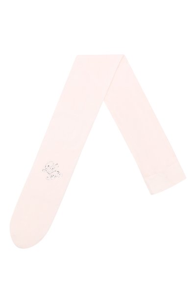Розовые колготки изготовили из мягкой эластичной микрофибры. Бархатистый на ощупь материал хорошо тянется, поэтому вещь плотно облегает ноги и при этом не пережимает сосуды. Широкий плоский пояс обеспечивает комфортную посадку, не натирая кожу. Модель декорировали аппликацией в виде эмблемы марки, выполненной сверкающими стразами.