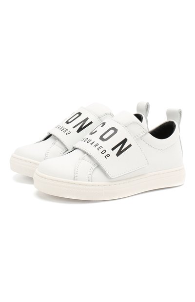 Белые кеды с широкой подошвой сшиты из мягкой матовой кожи, которая хорошо держит форму. Широкий ремешок с застежкой велькро украшен черной крупной надписью «Icon» и принтом-логотипом марки. Чтобы не прятать такой декор, рекомендуем сочетать обувь с укороченными джинсами.