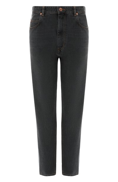 В сочетании с разноцветным боди, свободным двубортным жакетом и туфлями на шпильке укороченные черные джинсы из весенне-летней коллекции гармонично завершат повседневный образ. Для создания лаконичной модели без декора Изабель Маран выбрала мягкий прочный хлопок (переплетение окрашенных и неокрашенных нитей придает ткани неоднородный цвет).