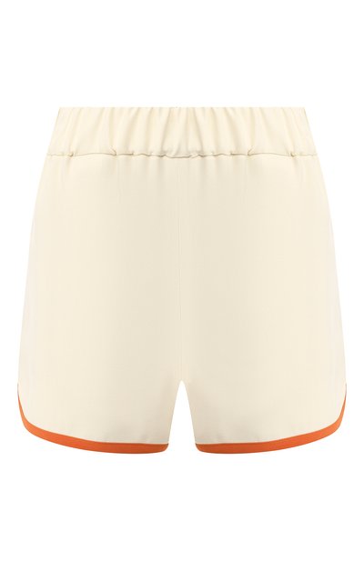 Кремовые мини-шорты из весенне-летней коллекции марки, основанной Пьетро Лоро Пьяна, сшиты из тонкого гладкого шелка с едва заметным блеском. Почти невесомая модель с широким эластичным поясом, подчеркивающим талию, отделана по краям оранжевым узким кантом. Наши стилисты рекомендуют носить с оливковой блузой и черными босоножками на шпильке.