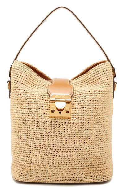В круизной коллекции дизайнеры бренда, основанного Генри Кроссом, обновили внешний вид сумки Murphy. Для создания бежевой модели использовали комбинацию прочной гибкой рафии и плотной гладкой кожи. Аксессуар закрывается узким клапаном с замком-защелкой. Внутрь поместятся смартфон и кошелек, во внутренний карман на молнии – ключи. В комплекте есть регулируемый по длине съемный плечевой ремень.