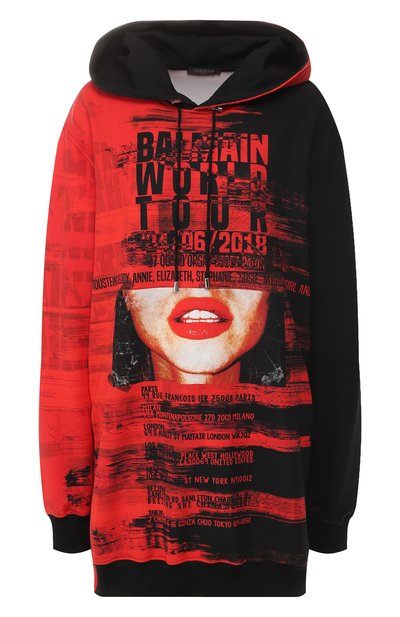 На показе весенне-летней коллекции бренда, основанного Пьером Бальманом, свободное худи сочетали с брюками и смокингом, а наши стилисты предлагают сыграть на контрасте объемов и носить вещь с облегающими джинсами. Модель, стилизованную под мерч, выполнили из мягкого эластичного неопрена. На боковых панелях — высокие молнии.