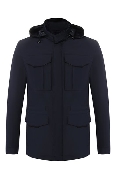 Синяя куртка из весенне-летней коллекции будто специально создана для долгих прогулок в межсезонье. За комфорт отвечают непромокаемый нейлон и легкий синтепоновый наполнитель, который хорошо сохраняет тепло. Воротник-стойка и капюшон защитят шею и голову от холодного воздуха и дождя. Изделие с крупными накладными карманами застегивается на молнию, скрытую под штормовой планкой.