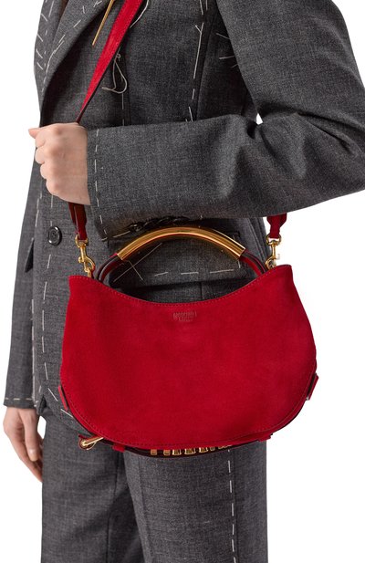 Сумку Devotion из гладкой телячьей кожи дополнили короткой ручкой и съемным плечевым ремнем-цепочкой. Аксессуар с внутренним карманом закрывается фигурным клапаном на кнопку-магнит, скрытую под ювелирным сердцем с инкрустацией жемчужными бусинами.