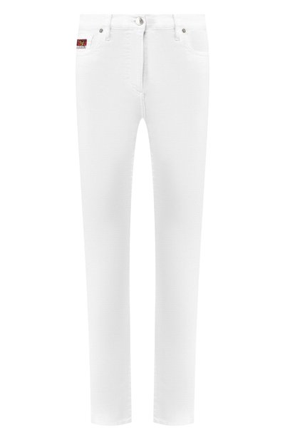 Белые облегающие джинсы из весенне-летней коллекции марки, основанной Кензо Такада, гармонично впишутся в повседневный гардероб. Мягкие брюки из гладкого хлопка освежат образ и не будут сковывать движения. Советуем носить с кедами в тон и черной футболкой.