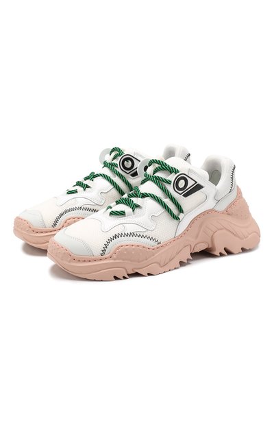 Алессандро Дель Аква включил в коллекцию сезона весна-лето белые кроссовки Billy. Ярким акцентом на них дизайнер сделал черно-зеленую шнуровку. Модель изготовили из мягкого текстиля, а укрепили кожаными накладками. Фигурная розовая подошва, характерная для всех ugly sneakers, здесь значительно заходит на мыс, боковые панели и задник.