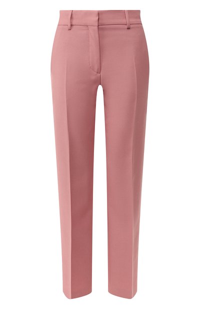 Розовые брюки с высокой посадкой и стрелками не только визуально выстроят вертикаль, удлиняющую силуэт, но и добавят красок образу. Модель из весенне-летней коллекции марки, основанной Томасом Берберри, сшита из почти немнущейся, гладкой полушерстяной ткани.